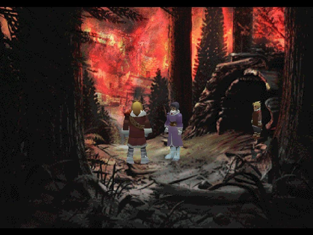 While Dart rests together with Lavitz and Shana in the Prairie, he reveals his story of being a survivor from Neet, when the Black Monster attacked the village 18 years before the events of the game. His father, however, went back into the village to help others, and was never seen again, as was his mother who followed him. In the ashes of Neet, Dart found a mysterious shining stone his father had in his possession.